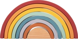 Denne regnbue af træ giver børn en fantastisk mulighed for at udvikle deres fantasi og motoriske færdigheder. Den indeholder 8 farvede buer og en trækugle, som kan fungere som et pædagogisk redskab til at forstå dimensioner og farver. Legetøjet er fremstillet i overensstemmelse med Montessori-pædagogik og er ideelt til fri leg.