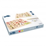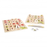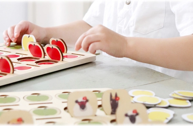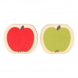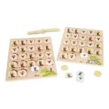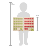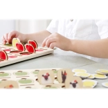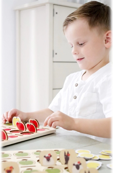 Farverige illustrationer af dyr og æbler på solide plader indbyder til leg og tåler samtidig intensiv brug af børn. Ideel til gentagne spil hjemme og på farten.