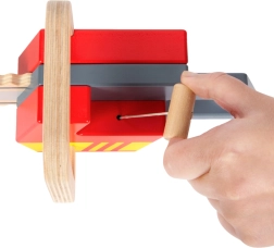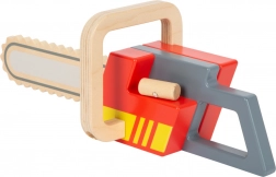 Denne kvalitets træmotorsav til børn kombinerer robust udførelse og sikkert design til daglig leg. De markante røde og gule elementer med den realistiske savform stimulerer fantasien og styrker rolleleg og finmotorik.