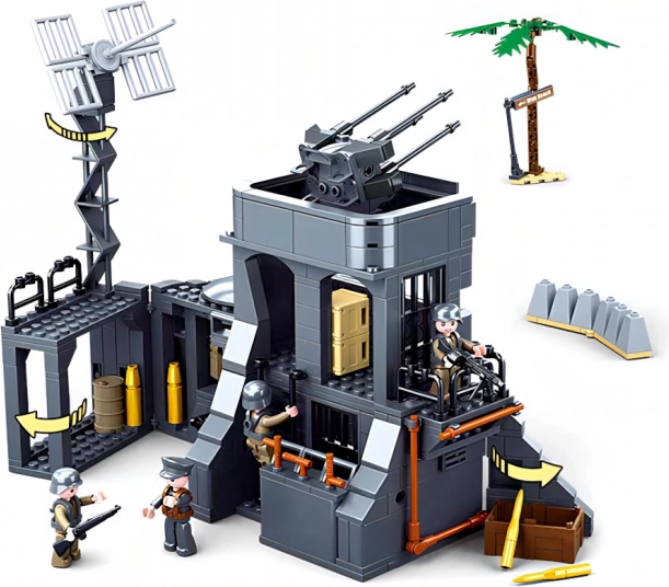 Skab et realistisk militært scenarie med fæstning, vagttårn, radar, båd og motorcykel. Sættet byder på jævne legefunktioner, herunder roterende kanoner, bevægelige dele og rigt tilbehør. Takket være kompatibilitet med andre byggesæt kan du nemt udvide din militærsamling.