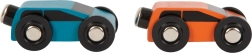 Pakken indeholder to biler og detaljeret tilbehør: tankanlæg og ladestation, løfterampe samt vaskeanlæg med tekstilbørster. Den robuste udførelse af kraftig træfiner med elementer af massivt træ og sikker plast sikrer stabilitet og holdbarhed. Produktet kræver montering; der medfølger billedvejledning.