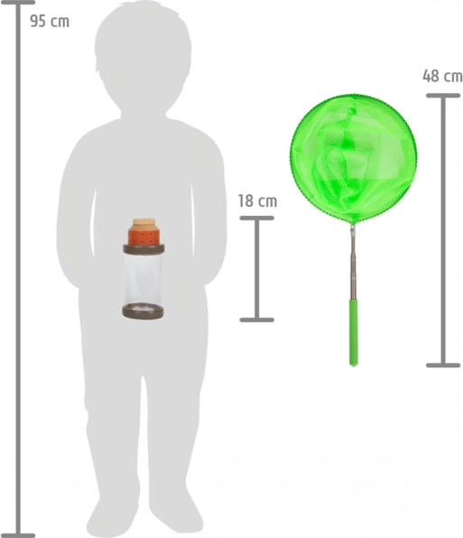 Dette sæt er et perfekt valg for små opdagelsesrejsende, der elsker naturen. Det indeholder en træpincet, klipboard, net til sommerfugle og en insektsbeholder med lup, som gør det muligt for unge forskere at udforske deres omgivelser sikkert.