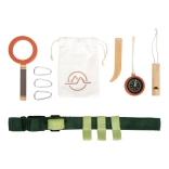 Tag på uforglemmelige eventyr med et bælte fuld af udstyr. Børn vil elske det robuste bælte, som inkluderer en træfløjte, lup, pincet, kompas, reb og en stofpose. Alt kan let fastgøres ved hjælp af øjer og karabiner.