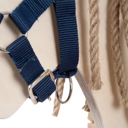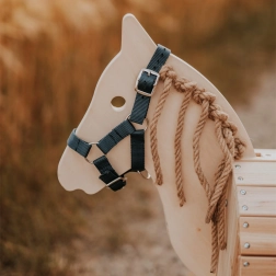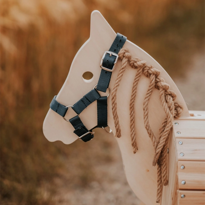 Børnetræhesten er lavet af holdbart, ubehandlet træ, som efter behov kan behandles med beskyttende lak. Hestens ryg højde er 50 cm, hvilket giver let adgang selv for mindre børn. Hesten står på stabile ben, hvilket gør den sikker at lege med både inde og ude. En grime er inkluderet i pakken, som kan forbindes med en træksnor for mere interaktiv leg. Træhesten understøtter børns fantasi og finmotorik takket være sisalman og hale, som kan flettes og friseres.