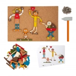 Kreativt legetøj til udvikling af færdigheder! Dette bankespil giver børn mulighed for at skabe forskellige billeder ved hjælp af en hammer, en korkplade og farvede trædele.