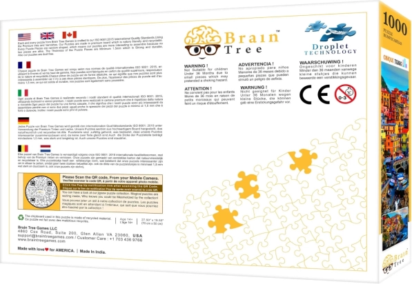 I modsætning til almindelige puslespil er Brain Tree brikkerne skåret mere tilfældigt, hvilket tilfører samlingen variation og underholdning. Hver brik er unik. Pakken indeholder en plakat med tilsvarende billede, høj kvalitets tryk, flere praktiske opbevaringsrum og en papirstander til at placere æsken, hvilket gør det lettere at se mønsteret under samlingen.
