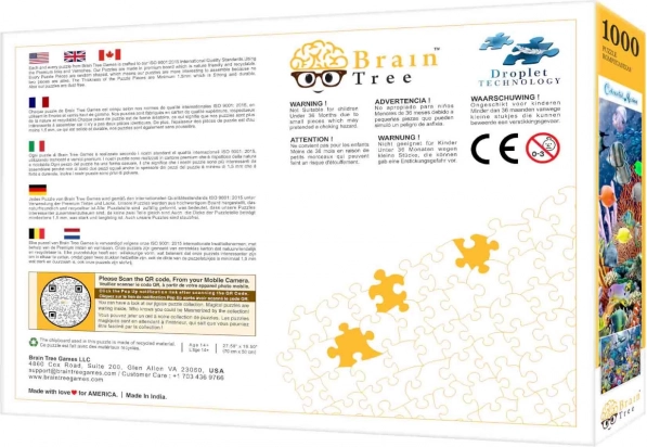 Puslespillet indeholder 1000 brikker, der er skåret tilfældigt, hvilket gør hver puslespiloplevelse unik.