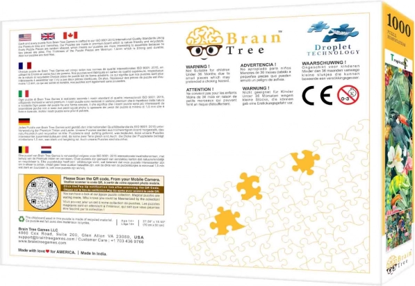 Oplev magien ved den tropiske natur gennem 1000 præcist udskårne brikker fra Brain Tree. Dette puslespil kan prale af: