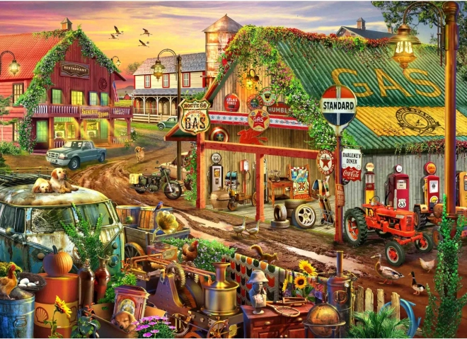 Stilfulde Brain Tree-puslespil med motiv af en landlig tankstation tilbyder 1000 unikt formede brikker, mat overflade med førsteklasses tryk og rigt tilbehør for behagelig lægning. Nyd varierede brikkeformer, plakat i puslespilskvalitet, praktiske sorteringsrum, lågstativ samt en robust genlukkelig pose til beskyttelse af brikkerne.