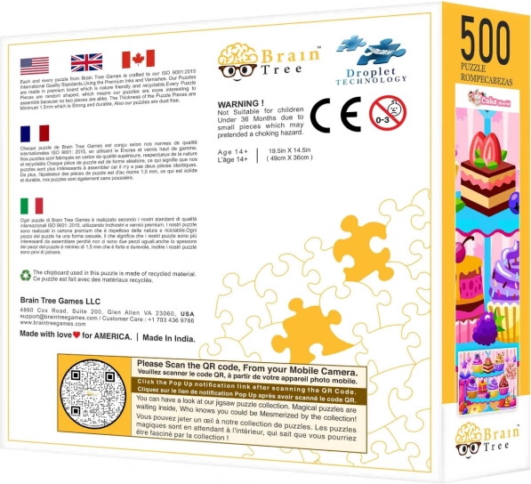 Puslespillet I Konditoriet fra Brain Tree giver en unik oplevelse takket være de tilfældigt udskårne brikker, der tilfører lægningen et strejf af eventyr. Hver brik er original, hvilket garanterer underholdning hver gang. Den matte finish giver flot visning selv ved skiftende lysforhold.