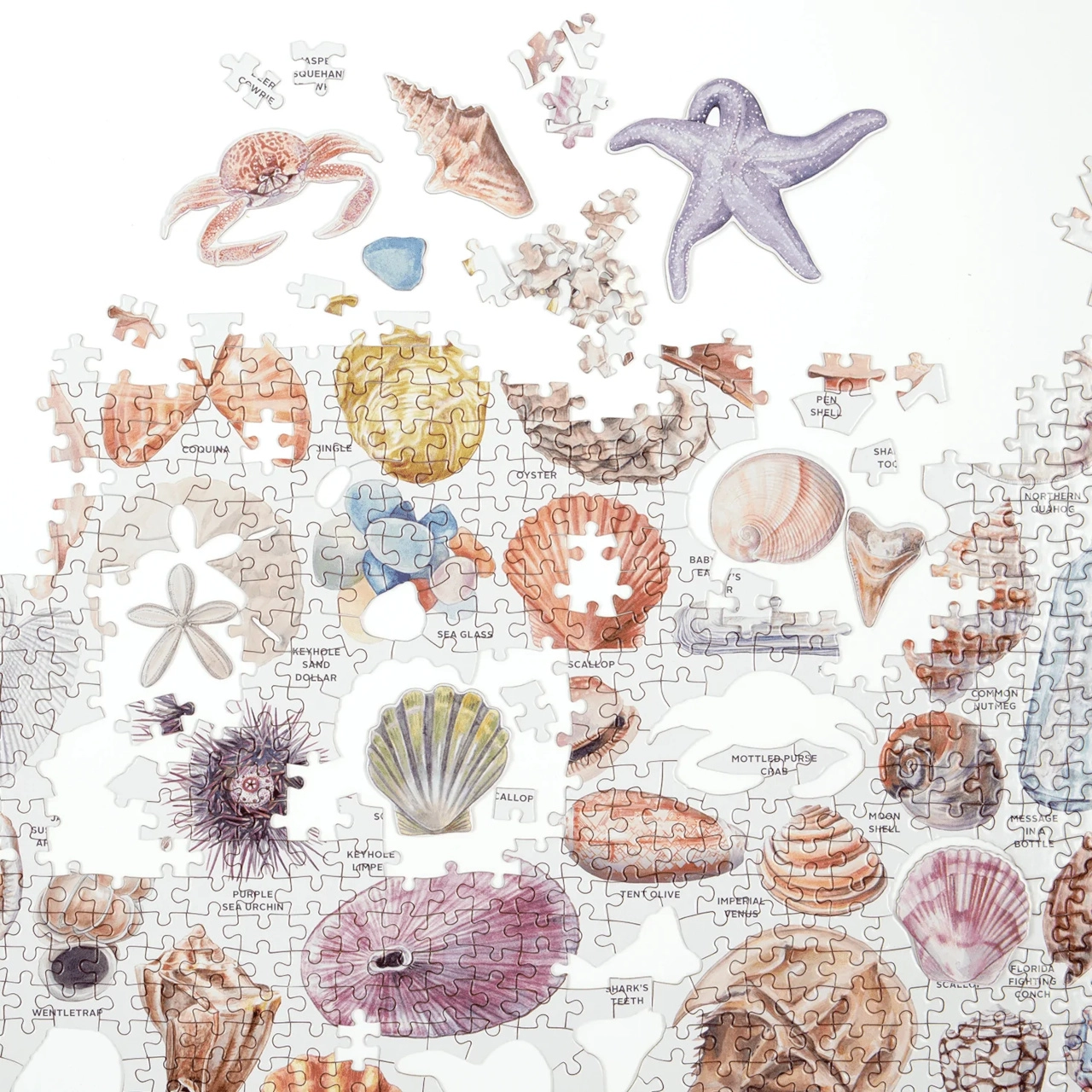 Puslespil baseret på licensen til værket The Beachcomber’s Companion [Strandfinnerens håndbog] af Anna Marlis Burgard, en kendt amerikansk rejsende og forfatter samt skaber af multimedieprojekter. Motivet gengiver trofast skaller fra mange forskellige dyr samt andre skatte, man kan finde på stranden. Nogle af elementerne er udformet som selvstændige brikker i finurlige former, der giver en frisk variation i lægningen. Illustrationerne er af Jillian Ditner, en videnskabelig illustrator især kendt i Nordamerika. Galison-puslespil fremstilles med en betydelig andel genbrugspapir og trykkes med sikre, førsteklasses farver. De har en mat overflade, som sikrer naturtro detaljer og farver under alle forhold. Bagsiden er belagt med en glat, behagelig overflade, der forhindrer støvdannelse ved opbevaring af et udlagt puslespil. Sammen med de omhyggeligt pakkede brikker finder du i æsken også et referenceark med motivet, som ofte indeholder flere oplysninger om skabere og værkets baggrund. Leveres i en særdeles robust og iøjnefaldende kartonæske lavet af genbrugskarton og bæredygtigt indvundne materialer med FSC®-certificering. Hovedegenskaber: 1000 præcist udstansede brikker, heraf 20 med unik form; fremstillet med genbrugte og bæredygtigt indvundne materialer; nøje udvalgt motiv fra anerkendte skabere og kunstnere; tryk og udførelse i højeste kvalitet; inkluderer referencebillede.