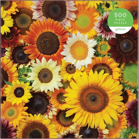 GALISON puslespil med solsikkeblomster, 500 brikker, 51×51 cm. Mat finish, præcise udskæringer, 70 % genbrugspapir, FSC. Til glæde og afslapning fra 8 år.