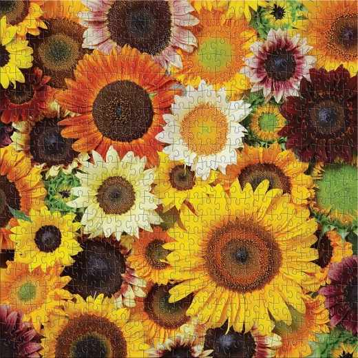 En strålende collage af solsikker af fotografen Julie Seabrook Ream forvandler puslespil til en sommerlig oplevelse. Dette puslespil med 500 brikker har formatet 51 × 51 cm, byder på mat overflade, præcise udskæringer og er fremstillet af bæredygtige materialer (op til 70 % genbrugspapir) med FSC-certificering – ideelt til afslapning og træning af koncentrationen fra 8 år.