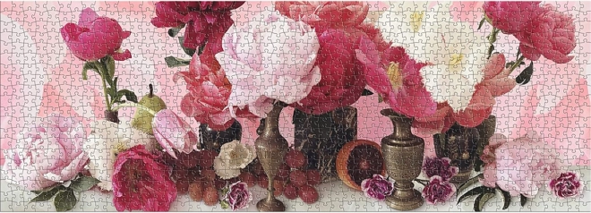 Tidløs komposition af tulipaner og pæoner i stil med hollandske stilleben bringer ro og æstetisk nydelse til puslespillet.