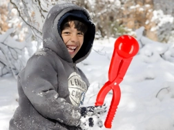 Det er nok at skovle op, klemme sammen, og du har en færdig bold med en diameter på 7 cm. Ideel til hurtigt at lave et lager til sneboldkampe.
