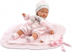 Så snart sutten tages ud, begynder dukken at sige mama, papa og laver andre realistiske lyde af en grædende baby. Denne dukke har en blød stofkrop, som er perfekt til at kramme og lege plejende lege.