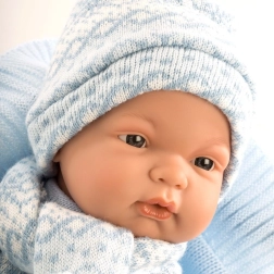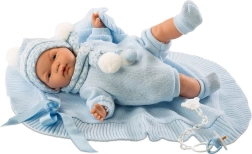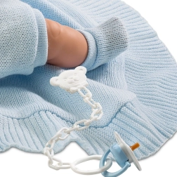 Babydukken NEW BORN JOEL LLORÓN på 38 cm er lavet med fokus på detaljer – fine ansigtstræk, bløde tekstiler og nem påklædning. Når sutten tages ud, siger den “mor”, “far” og afgiver en naturtro babygråd, som nemt beroliges ved at sætte sutten i igen.