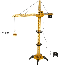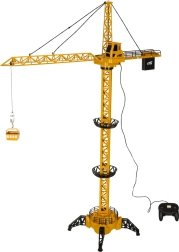 Fjernstyret byggekran vil glæde små bygmestre med realistiske funktioner og timevis af underholdning. Med en højde på op til 128 cm, roterende tårn og en funktionel krog løfter og sænker den nemt last ved hjælp af den medfølgende fjernbetjening. Legen forstærkes af lys- og lydeffekter, og samlingen klares nemt derhjemme.