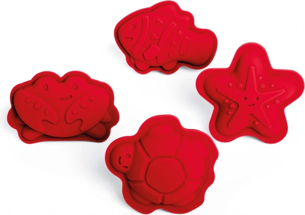 Oplev uendelig sjov på stranden med røde silikoneforme i form af havdyr fra Bigjigs Toys. Med dem kan der skabes forskellige sandfigurer, som let kan opbevares.