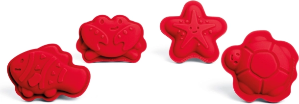 - Sættet indeholder fire forme i form af havdyr: søstjerne, krabbe, fisk og skildpadde.
