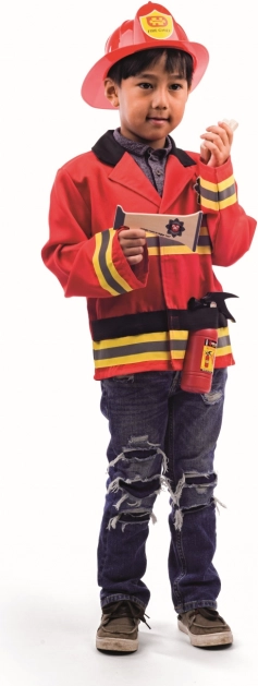 - Komplet sæt: jakke, hjelm, brandslukker, walkie-talkie, megafon