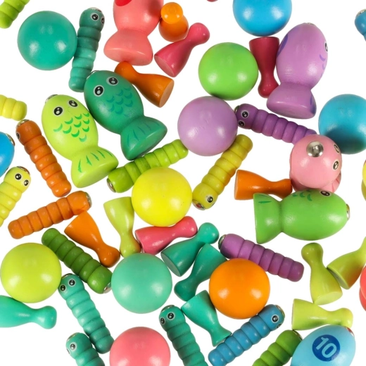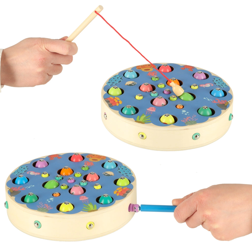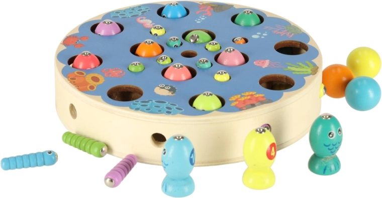Børn fanger farverige fisk og larver med magnetiske stænger – de træner præcision, tålmodighed og hånd‑øje-koordination på en legende måde.