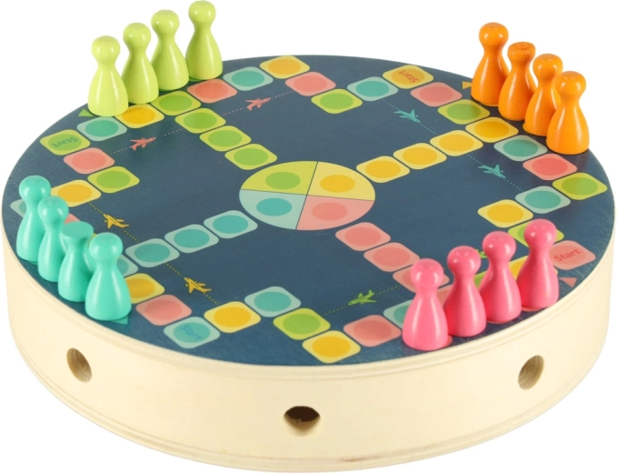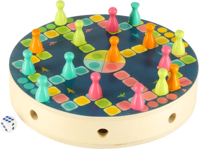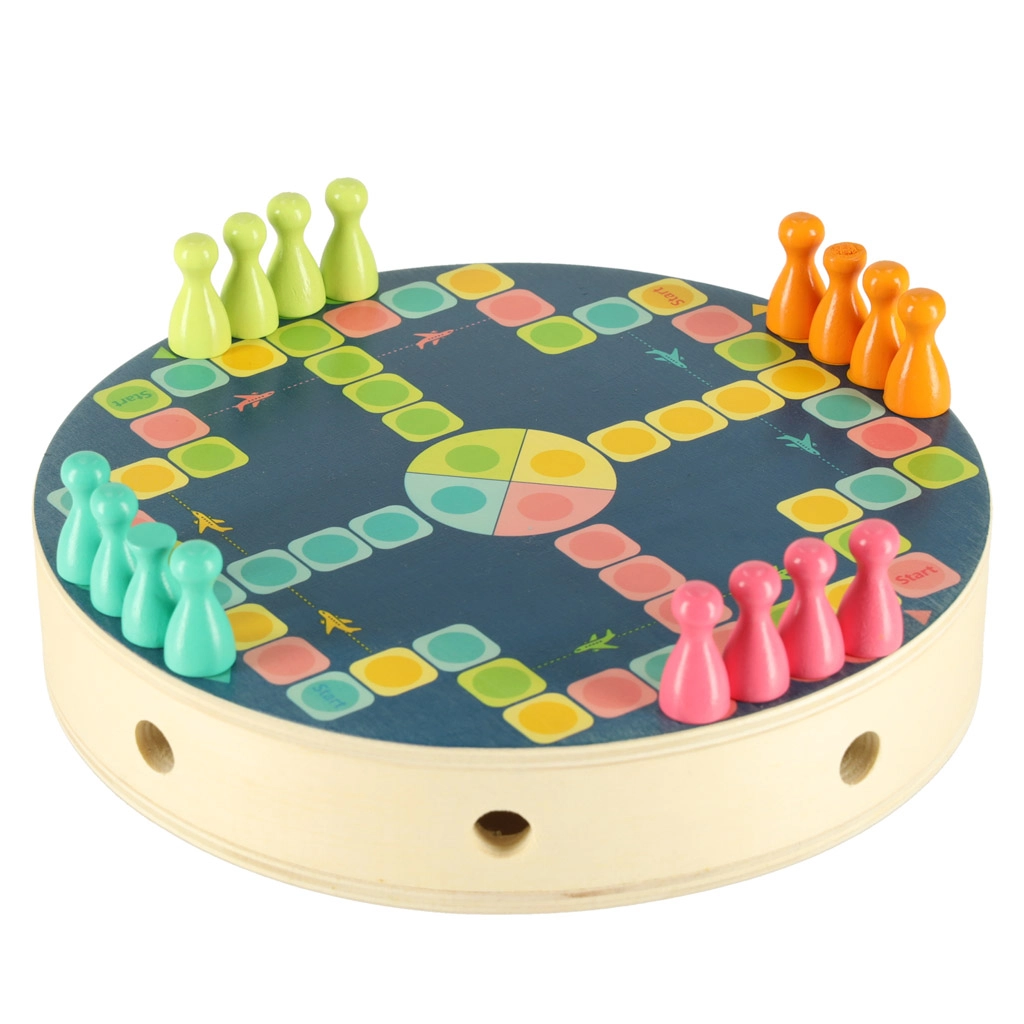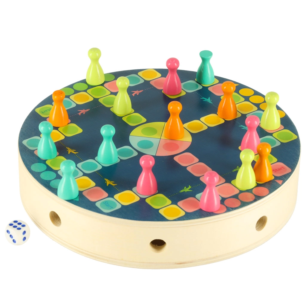 Der medfølger også et enkelt brætspil med brikker og terning til at øve tal og de første spilregler. Alle dele har glatte kanter og er lavet af kvalitets træ med holdbare farver, så de ligger godt i hånden og er sikre til daglig leg.