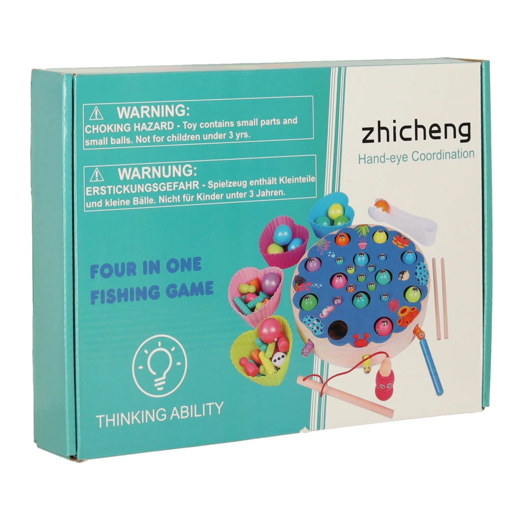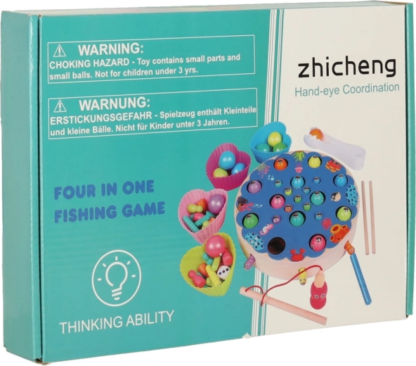 Et sjovt og lærerigt trælegetøj for børn fra 3 år, der kombinerer magnetisk fiskeri, fangst af larver, farvesortering og tælling. Støtter finmotorik, hånd‑øje-koordination og logisk tænkning. Farverige, glat-slebne dele af sikkert lakeret træ indbyder til opdagelse og fælles familiespil.
