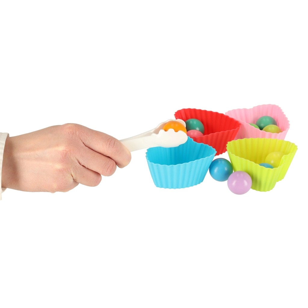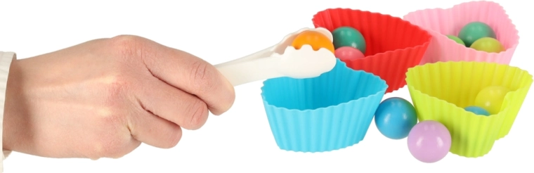 - Variable aktiviteter: magnetisk fiskeri, fangst af larver, sortering i silikoneskåle, flytning med pincet, bevægelse på spillepladen.