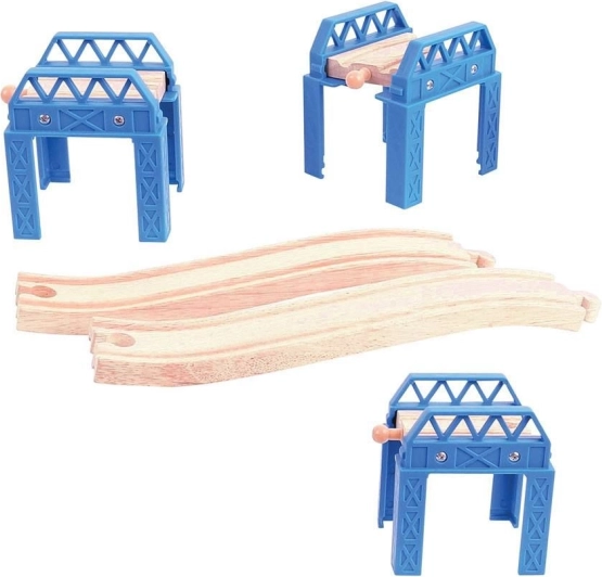 Nyd legen med en træbro-konstruktion fra det kendte mærke Bigjigs Rail. Dette produkt lader unge byggere drømme og skabe komplekse brostrukturer til deres togbaner. Sættet indeholder tre forhøjede dele og skinner til stigning og fald, som muliggør spændende og varierede byggemuligheder.