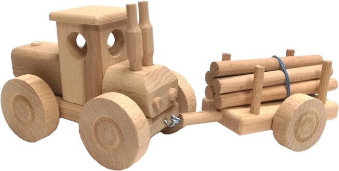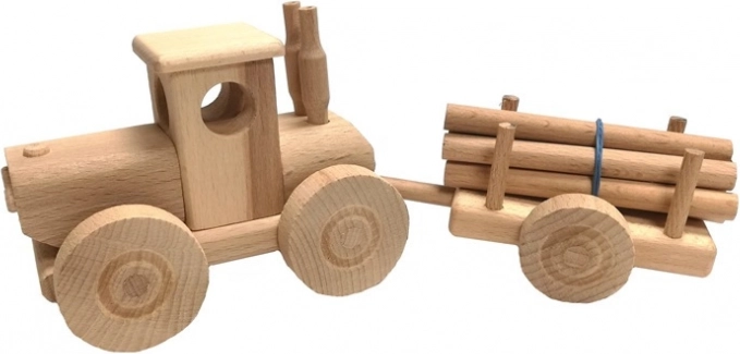 Denne naturlige trætraktor med tømmeranhænger vil glæde små chauffører og elskere af klassisk legetøj. Den præcist udførte model i bøgetræ byder på jævn kørsel, holdbarhed og et tidløst design uden lak og kemiske behandlinger.