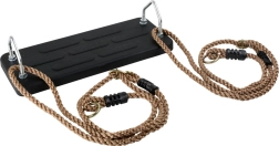 Stærke, fleksible reb af holdbart materiale afsluttes med metalringe for nem ophængning. Med metaløjerne kan du hurtigt justere længden op til 180 cm, så swinget passer perfekt til forskellige ophængningshøjder. Den maksimale bæreevne på 100 kg sikrer langvarig og sikker brug.