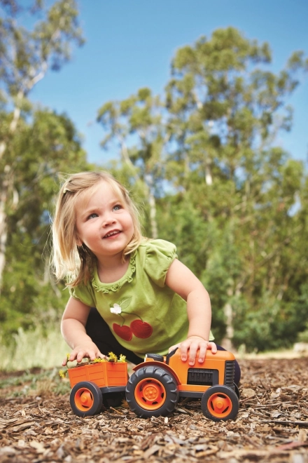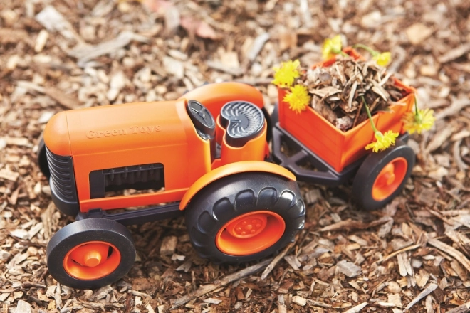 Udforsk verden af landbrugssjov med den orange traktor med anhænger fra mærket Green Toys. Dette legetøj er lavet af genbrugsplast fra mælkeflasker, hvilket sikrer både robusthed og hensyn til vores planet. Velegnet til både indendørs og udendørs brug, traktoren giver uendelige timers sjov for børn fra 12 måneder.