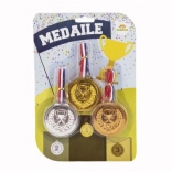 Medaljer til små vindere! Dette sæt med tre plastmedaljer med snor er ideelt til børn, der deltager i forskellige konkurrencer og glæder sig til en belønning for deres indsats.