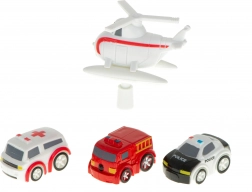 Indeholder tre køretøjer: ambulance, brandbil og politibil, som muliggør simulering af forskellige redningsmissioner og dynamiske scenarier.