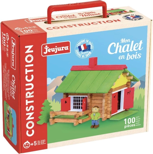 Et træbyggesæt inspireret af alpine chalet’er vil glæde enhver lille bygmester og blive en pynt i børneværelset. Jeujura Constructions har en lang tradition og hører til de klassiske franske legetøj. Serien tilbyder temaer dedikeret til chalet’er, huse og gårde samt den vilde vest og middelalderen. Sættene kan frit kombineres indbyrdes, og til mange af dem tilbydes også tilbehør, figurer og køretøjer. De fremstilles i Frankrig af massivt bøge- og fyrretræ af fransk oprindelse. Delene er udelukkende behandlet med vandbaserede farver og lakker. Hvert sæt er pakket i en praktisk papkuffert trykt med vegetabilske trykfarver, og pakken indeholder en letforståelig vejledning. Hovedegenskaber: 100 dele af massivt træ og base, praktisk emballage, fremstillet i Frankrig