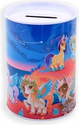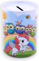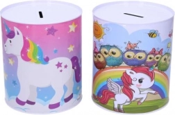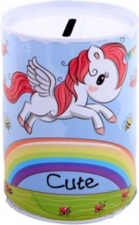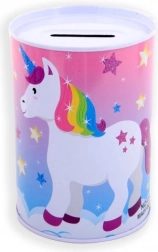 Denne metalsparegris med enhjørningemotiv er ideel til børn, der vil begynde at spare op til deres yndlingslegetøj. Den udmærker sig ved et dekorativt design og en praktisk åbning øverst til mønter.