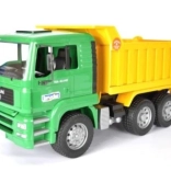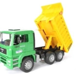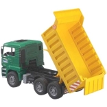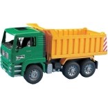 Den fuldt funktionsdygtige plastmodel BRUDER MAN tiplastbil i skala 1:16 er et godt valg for alle børn, der elsker byggepladser og realistisk leg. Kabinen kan vippes for at kigge på den detaljerede motor, sidespejlene kan klappes, og ladet løftes nemt for at tippe løst materiale af.
