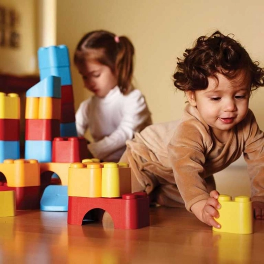 Sættet passer til børneværelset, sandkassen og vandleg og er nemt at rengøre. Ideelt som det første byggesæt til børn fra 6 måneder.