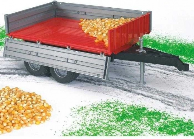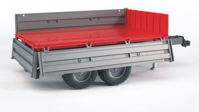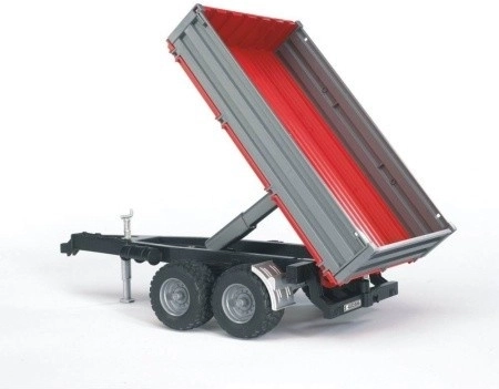 Bruder rød tiptrailer er en tro kopi af en to-akslet trailer, der bringer liv til enhver legescene. Dens primære kendetegn er den aftagelige ladflade og åbne sider og bagklap, som giver nem håndtering af lasten.