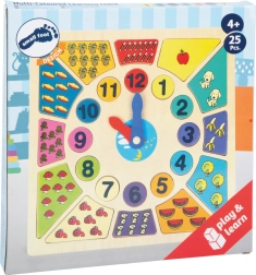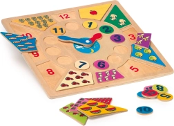 Det træbaserede pædagogiske puslespil “Lær klokken” er et legende hjælpemiddel, der gør det nemt for børn at tilegne sig både tidslæsning og genkendelse af mængder. De udtagelige brikker med tal sættes tilbage på de rigtige pladser, hvilket styrker koncentration og hånd-øje-koordination.