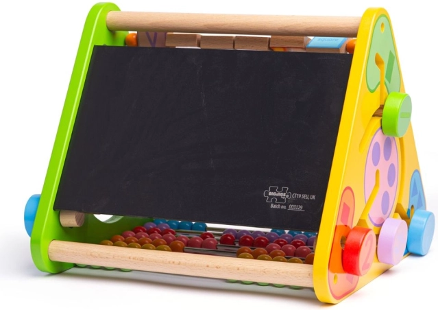Opdag en farverig verden af læring og leg med den multifunktionelle trætrekant BIGJIGS BABY. Den tilbyder op til 5 forskellige aktiviteter – kugleramme, skrivetavle, alfabet med billeder på engelsk, farve- og talgenkendelse samt dyr. Den robuste konstruktion uden løse dele er ideel hjemme og på farten, og den udvikler finmotorik, koordination og kognitive færdigheder.