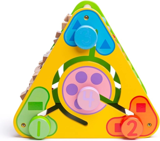 Skrivetavle, dyr og andre roterende elementer fastholder børns opmærksomhed og byder på et bredt udvalg af aktiviteter i én stabil trekant.