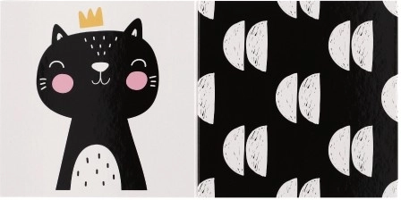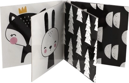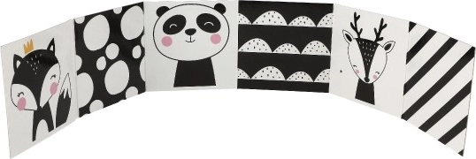 Skiftende kontrastformer og søde illustrationer i nordisk stil fanger barnets opmærksomhed, og senere kan barnet lære at genkende de enkelte skovdyr. Den praktiske harmonikaform gør det muligt at folde bogen ud og stille den foran barnet, selvom det endnu ikke kan bladre selv.