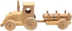 Opdag skønheden og enkelheden i denne omhyggeligt forarbejdede trætraktor med trailer. Dens glatte overfladefinish bringer et strejf af natur ind i dit hjem. Traktoren er robust og uden skarpe kanter, hvilket gør den til et sikkert valg for børn fra 3 år. Dens præcise design og bevægelige dele øger attraktiviteten og interaktionen under legen. Dette produkt er ikke kun holdbart, men også indbydende til kreativ leg, både derhjemme og i sandkassen.