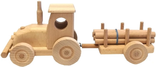 Denne trætraktor med trailer er den ideelle ledsager til fantasifuld leg for børn. Den er fremstillet af kvalitets bøgetræ med en naturlig voksoverflade.