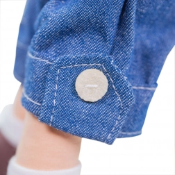 Den stribede T-shirt og de blå shorts giver dukken et legende look, som børn elsker.