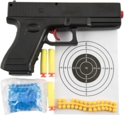 Denne kompakte kuglepistol er et godt valg for små skyttere. Den tilbyder varierede skyde-muligheder – fra 6 mm vandkugler over skumprojektiler til gummikugler. Takket være nem ladning og let konstruktion er den velegnet til både indendørs og udendørs leg.