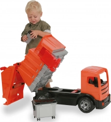 Denne store orange skraldebil, inspireret af den rigtige model MERCEDES ACTROS, bringer autentiske oplevelser ind på børneværelset. To uafhængige vippefunktioner og de medfølgende spande gør det muligt at efterligne ægte indsamling og tømning af affald. Den holdbare udførelse i førsteklasses plast opfylder europæiske standarder og tåler hårdere brug.