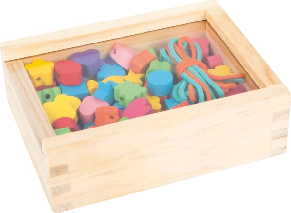 Træet kommer fra 100% FSC® certificeret produktion, hvilket sikrer, at det er miljøvenligt. At snore perler udvikler ikke kun børns færdigheder, men tilbyder også et sundt pusterum fra den digitale verden. Dette kreative legetøj vil vinde enhver lille smykkeentusiasts hjerte.